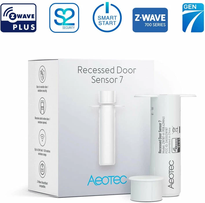 Aeotec Recessed Door Sensor 7, Z-Wave Plus 700 Series, Battery Powered, Smart Start & S2 Security – ZW187