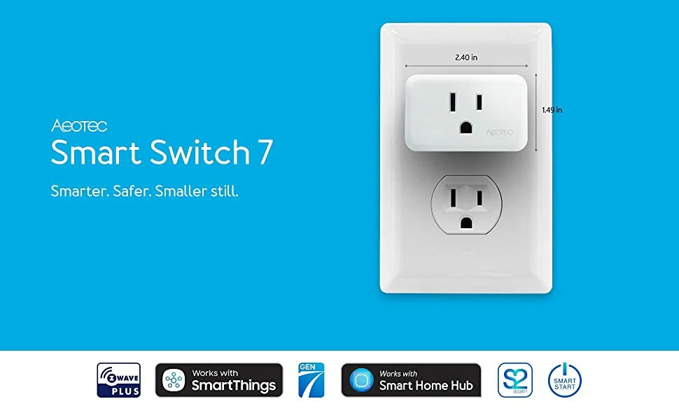 - Aeotec’s smallest, best-certified smart plug built with Gen7, Z-Wave Plus, S2, and SmartStart. 30% smaller than past smart switches at only 2.4×1.5×1.2 inch – so small that it doesn’t block other power outlets!