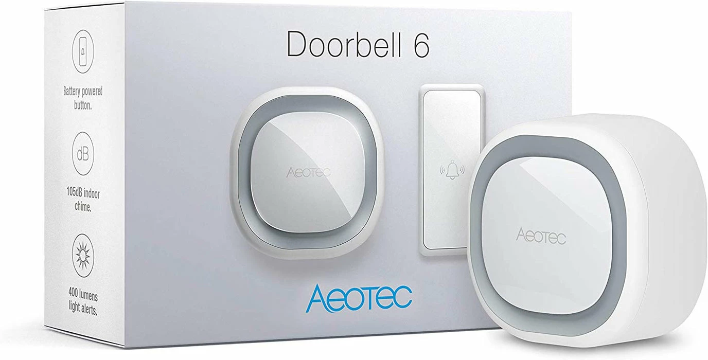 Aeotec Z-Wave Plus Doorbell 6 With Outdoor Button, Wall-Mounted Sound & Light Ring, Smart Home Wireless Chime, 110 DB – ZW162