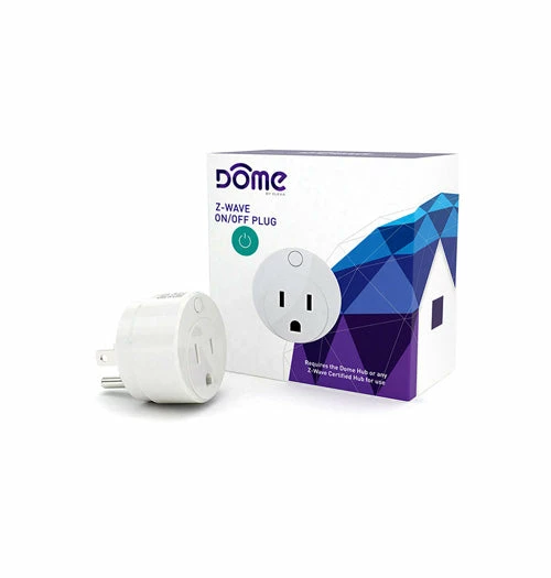 The Dome On/Off Plug-In Switch is a Z-Wave Plus device that plugs into a standard 3-prong power outlet and lets you turn on or off any connected electronic device. The On/Off Plug-In Switch also monitors how much energy the attached device uses, and reports the data to your Z-Wave Hub.