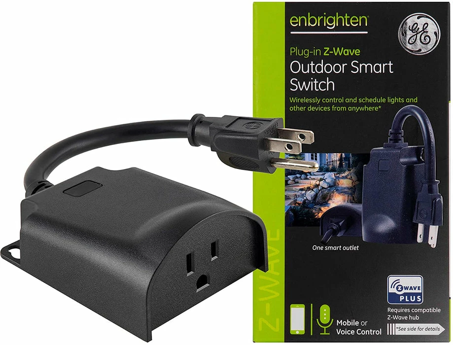 Automate your surroundings with the GE-branded Enbrighten Z-Wave Plug-in Outdoor Smart Switch. When paired with a compatible hub, the smart switch controls a plug-in device through ON/OFF commands and programmed settings. Wirelessly operate landscape and seasonal lighting, fountains, pumps, and more for effortless management of your yard.