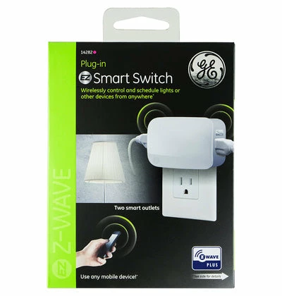 Transform any home into a smart home with the plug-in GE Z-Wave Plus Dual Outlet Smart Switch. The switch allows you to wirelessly schedule and control any table or floor lamp in your home from anywhere, at any time.