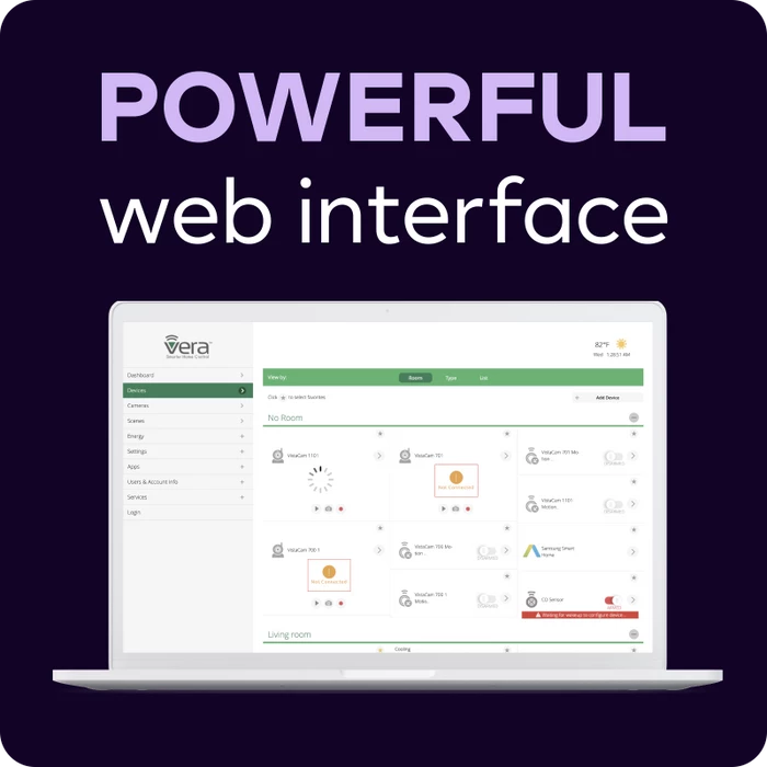- Get remote access and system notifications sent to your iOS or Android phone through the Vera App